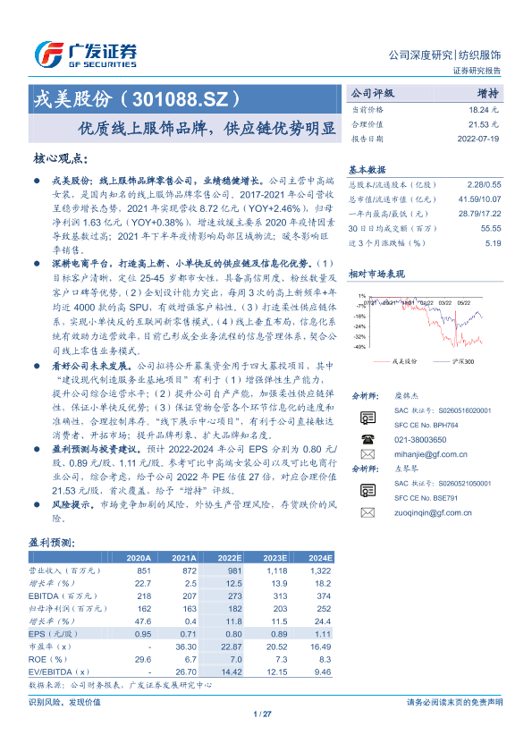 【广发证券】【20220719】20220719-广发证券-戎美股份-301088.SZ-优质线上服饰品牌,供应链优势明显-27页