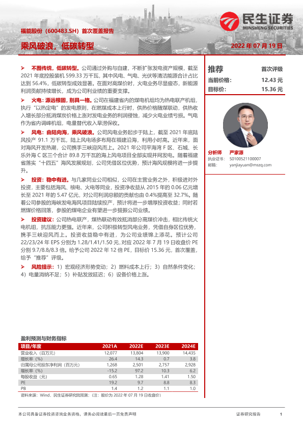 【民生证券】【20220719】20220719-民生证券-福能股份-600483.SH-首次覆盖报告:乘风破浪,低碳转型-30页
