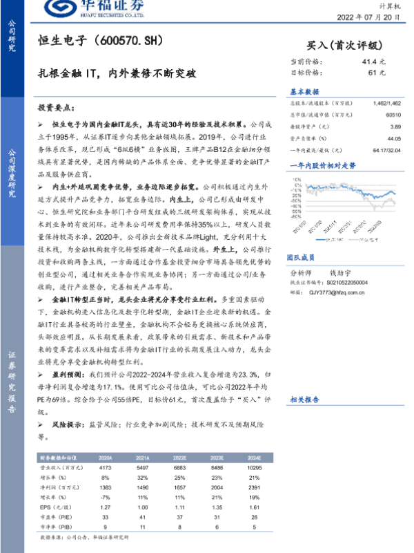 【华福证券】【20220720】扎根金融IT,内外兼修不断突破-19页