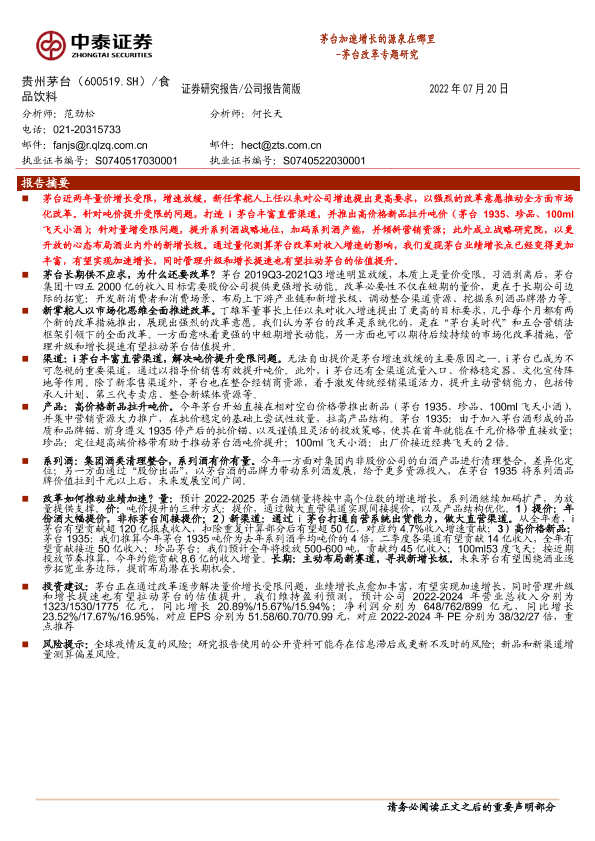【中泰证券】【20220720】茅台改革专题研究:茅台加速增长的源泉在哪里-25页