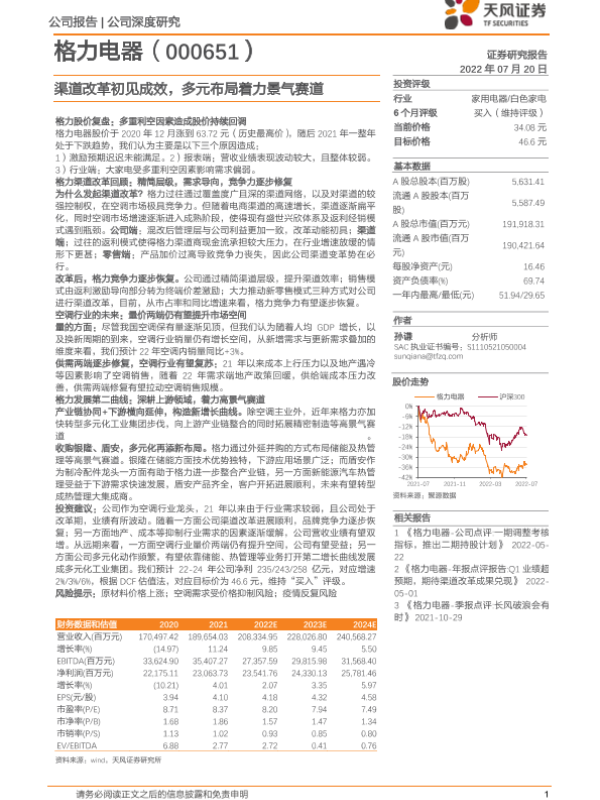 【天风证券】【20220720】20220720-天风证券-格力电器-000651.SZ-渠道改革初见成效,多元布局着力景气赛道-31页