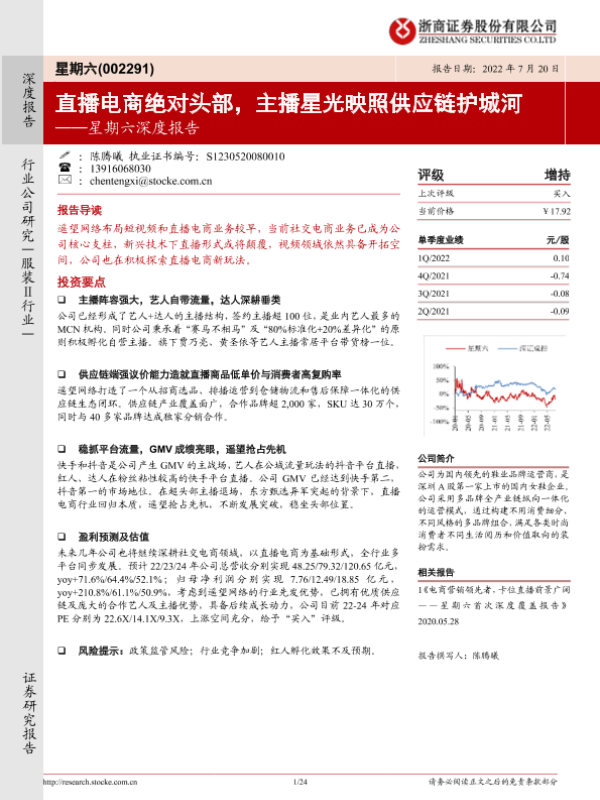 【浙商证券】【20220720】星期六深度报告:直播电商绝对头部,主播星光映照供应链护城河-24页