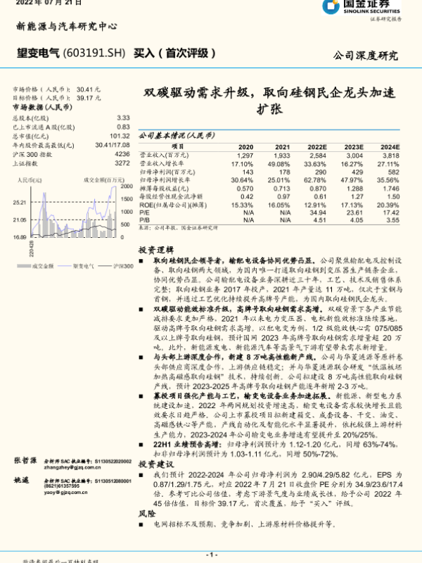 【国金证券】【20220721】双碳驱动需求升级,取向硅钢民企龙头加速扩张-22页