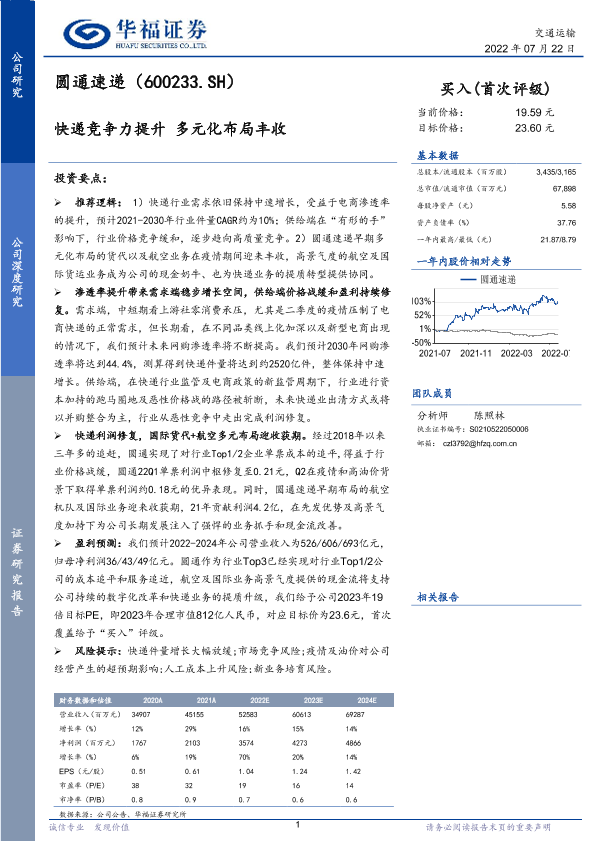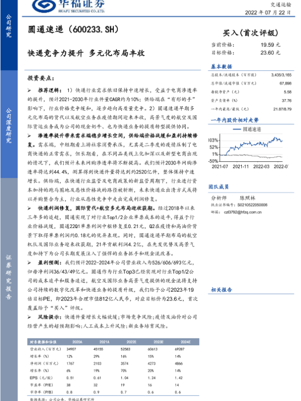 【华福证券】【20220722】圆通速递-600233.SH-快递竞争力提升 多元化布局丰收-32页