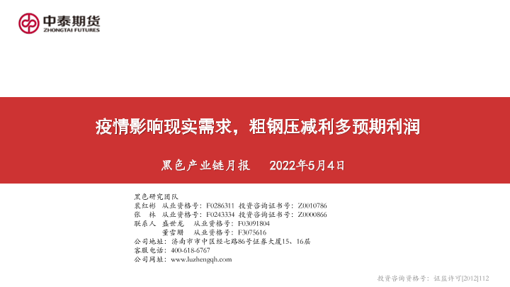 【中泰期货】【20220504】黑色产业链月报:疫情影响现实需求,粗钢压减利多预期利润-76页