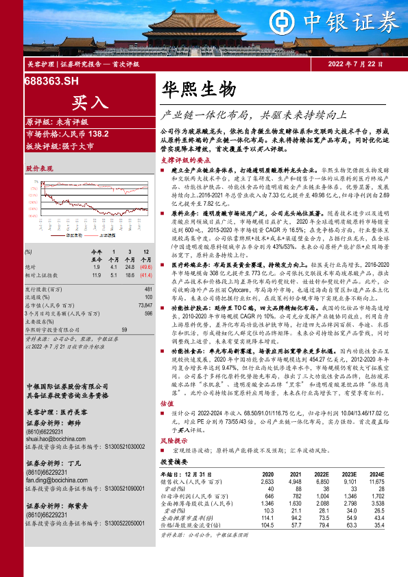 产业链布局 医疗终端 华熙生物 美容护理 透明质酸