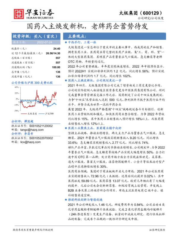 【华安证券】【20220724】国药入主焕发新机,老牌药企蓄势待发-20页
