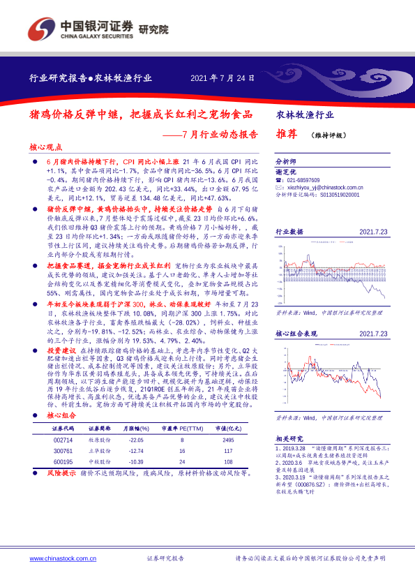 【银河证券】【20210724】农林牧渔行业7月行业动态报告:猪鸡价格反弹中继,把握成长红利之宠物食品-23页