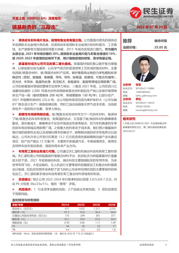 【民生证券】【20220724】20220724-民生证券-天宜上佳-688033.SH-深度报告:碳基新贵的“三段击”-38页
