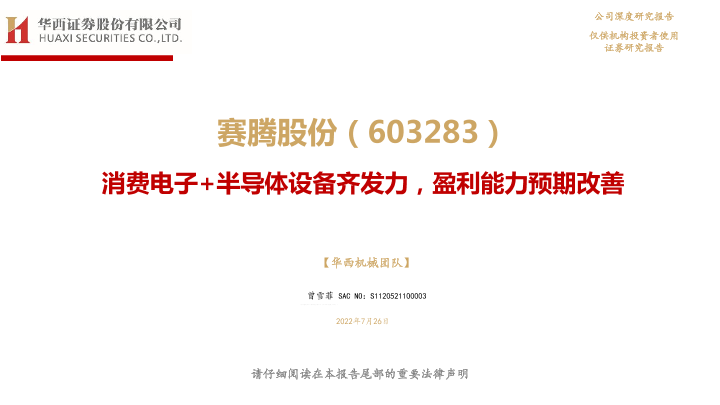 【华西证券】【20220726】赛腾股份-消费电子+半导体设备齐发力,盈利能力预期改善-34页