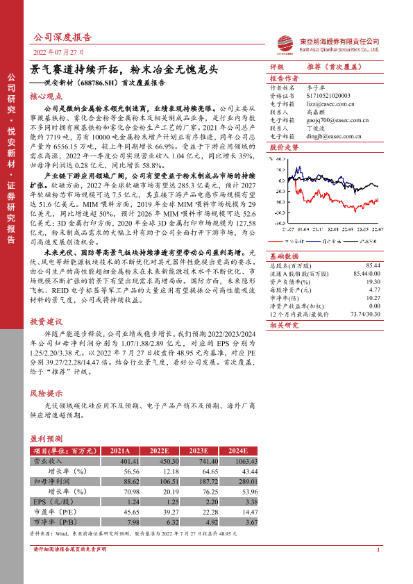 【东亚前海证券】【20220727】20220727-东亚前海证券-悦安新材-688786.SH-首次覆盖报告:景气赛道持续开拓,粉末冶金无愧龙头-30页