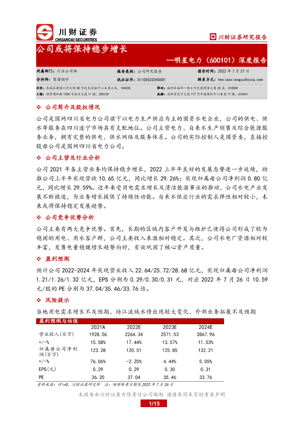 川财证券 电力热力燃气水生产 2022年 PDF 1.54 MB