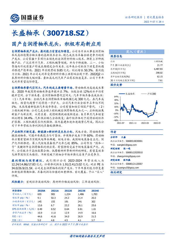 【国盛证券】【20220728】长盛轴承-国产自润滑轴承龙头,积极布局新应用-29页