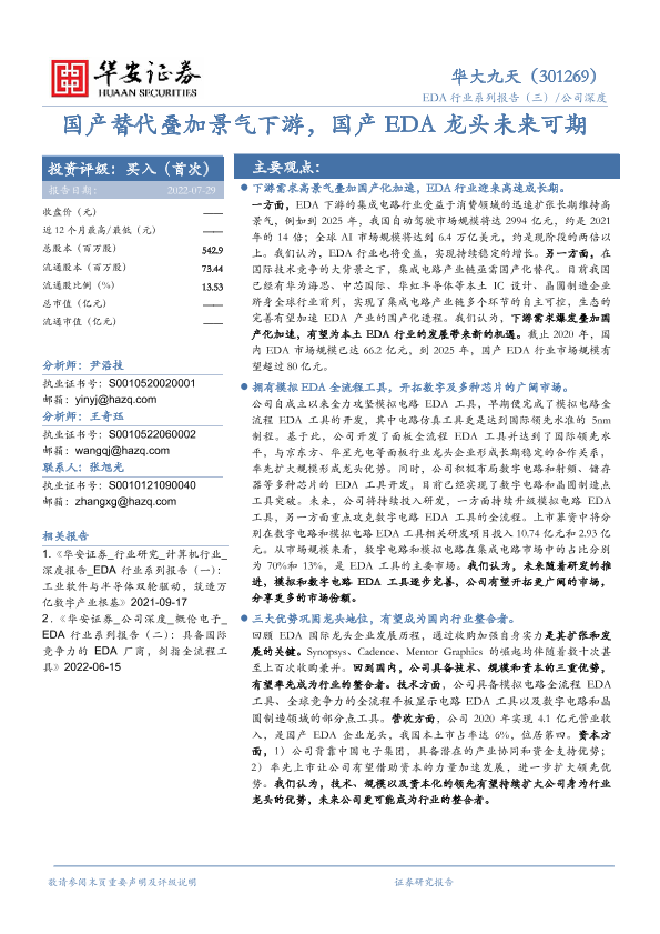 【华安证券】【20220729】国产替代叠加景气下游,国产EDA龙头未来可期-41页