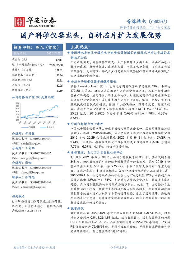 【华安证券】【20220725】普源精电-688337.SH-国产科学仪器龙头,自研芯片扩大发展优势-27页