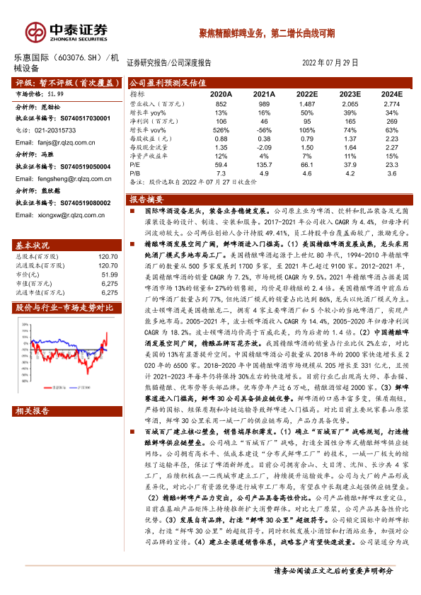 【中泰证券】【20220729】聚焦精酿鲜啤业务,第二增长曲线可期-26页