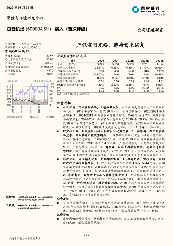 产能分析 机场研究 疫情影响 白云机场 非航业务