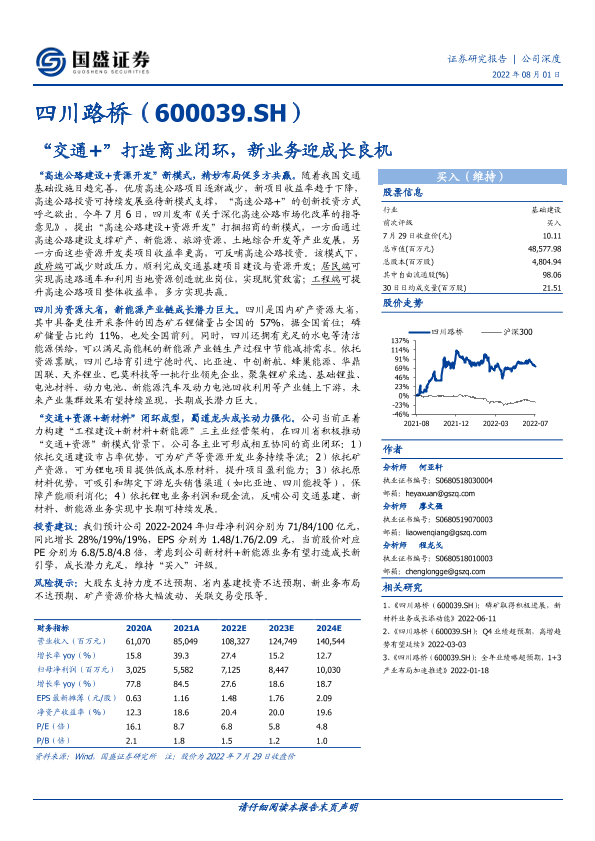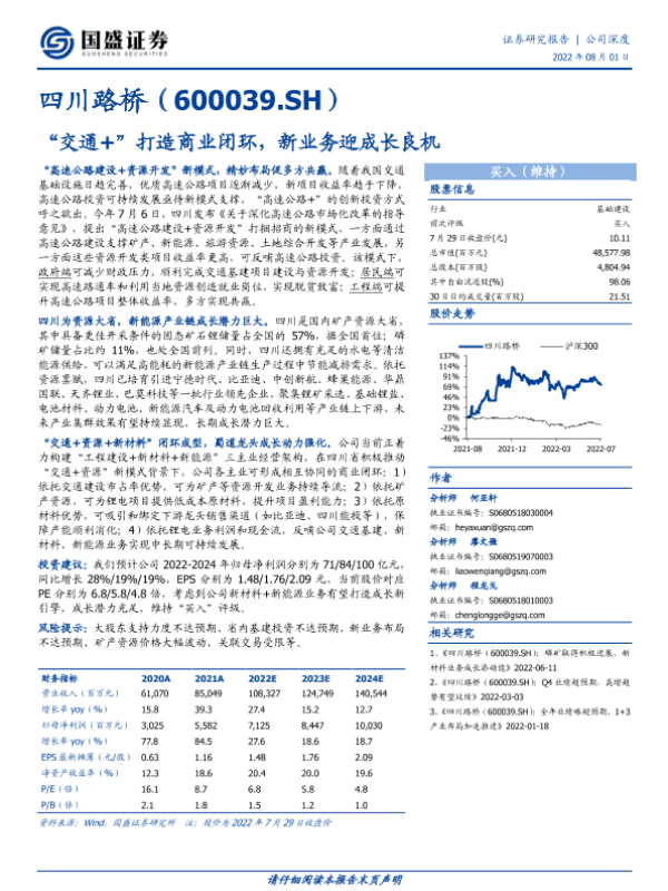 交通基建 四川路桥 新能源 资源开发 高速公路建设