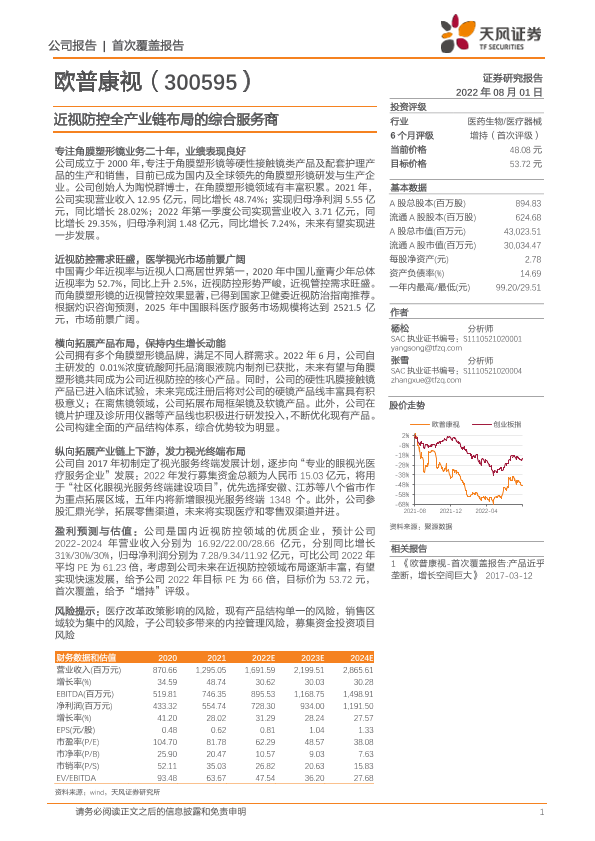 【天风证券】【20220801】欧普康视-300595.SZ-近视防控全产业链布局的综合服务商-23页