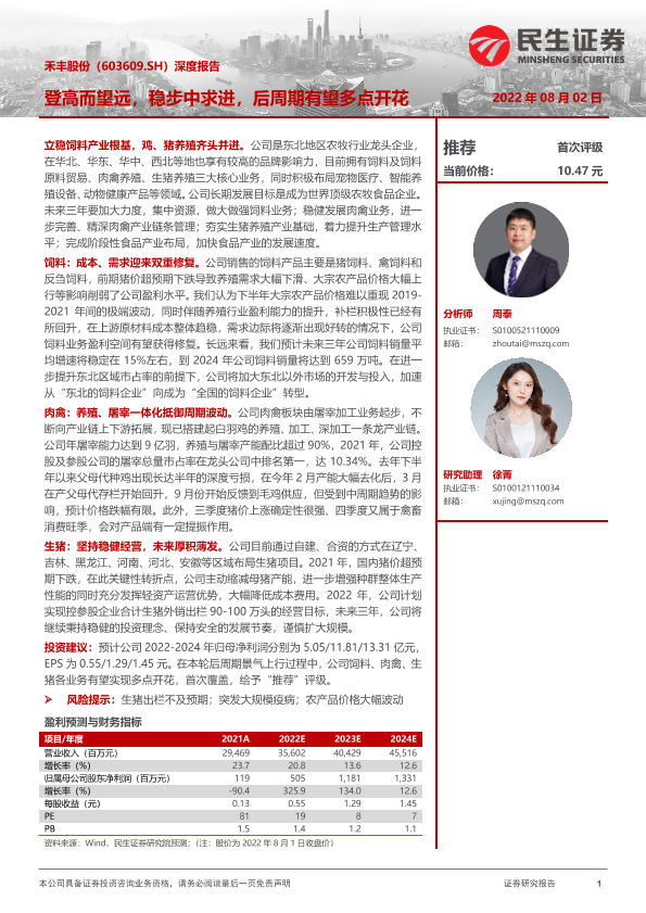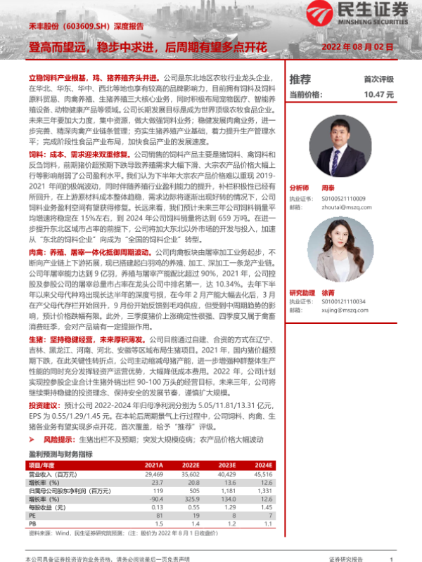 【民生证券】【20220802】20220802-民生证券-禾丰股份-603609.SH-深度报告:登高而望远,稳步中求进,后周期有望多点开花-26页