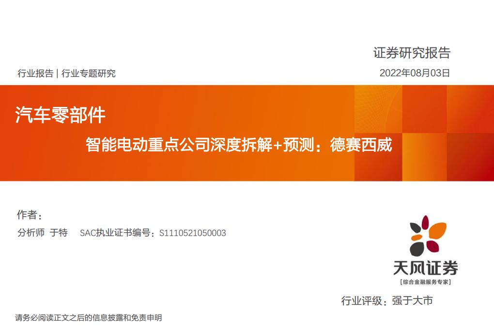 【天风证券】【20220803】智能电动重点公司深度拆解+预测:德赛西威-19页