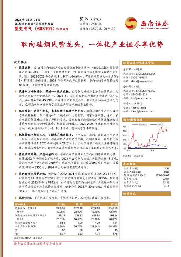 【西南证券】【20220804】取向硅钢民营龙头,一体化产业链尽享优势-27页