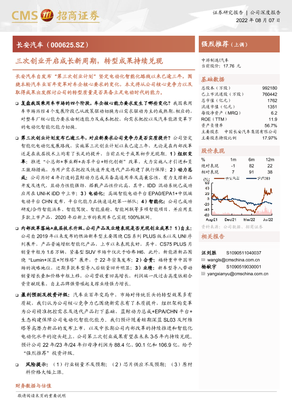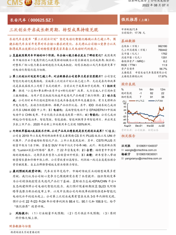 汽车制造业 电动化智能化 第三次创业 转型成果 长安汽车