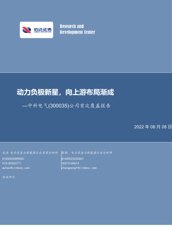 【信达证券】【20220808】20220808-信达证券-中科电气-300035.SZ-公司首次覆盖报告:动力负极新星,向上游布局渐成-25页
