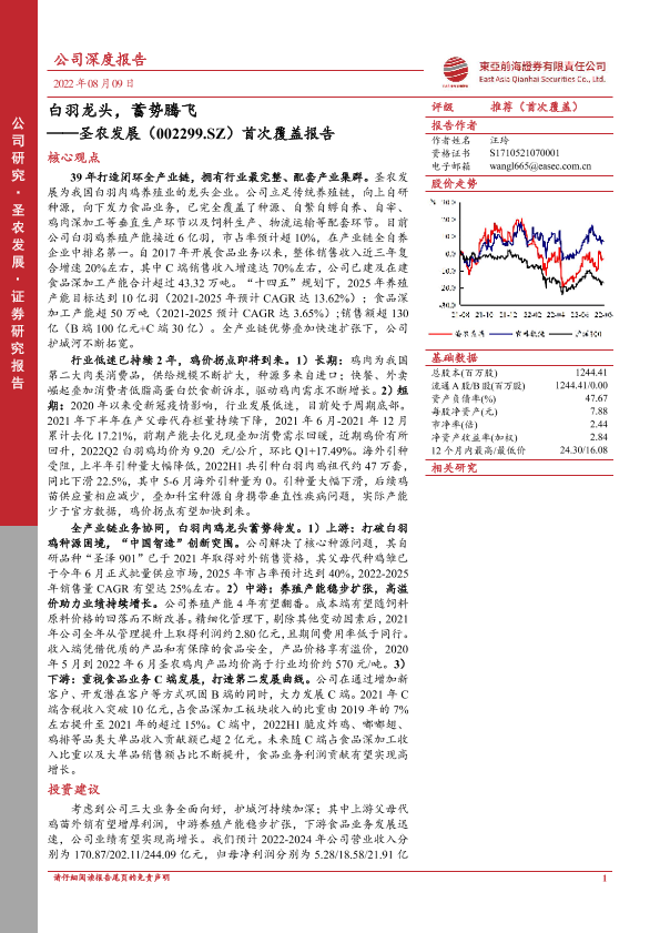 【东亚前海证券】【20220809】20220809-东亚前海证券-圣农发展-002299.SZ-首次覆盖报告:白羽龙头,蓄势腾飞-41页