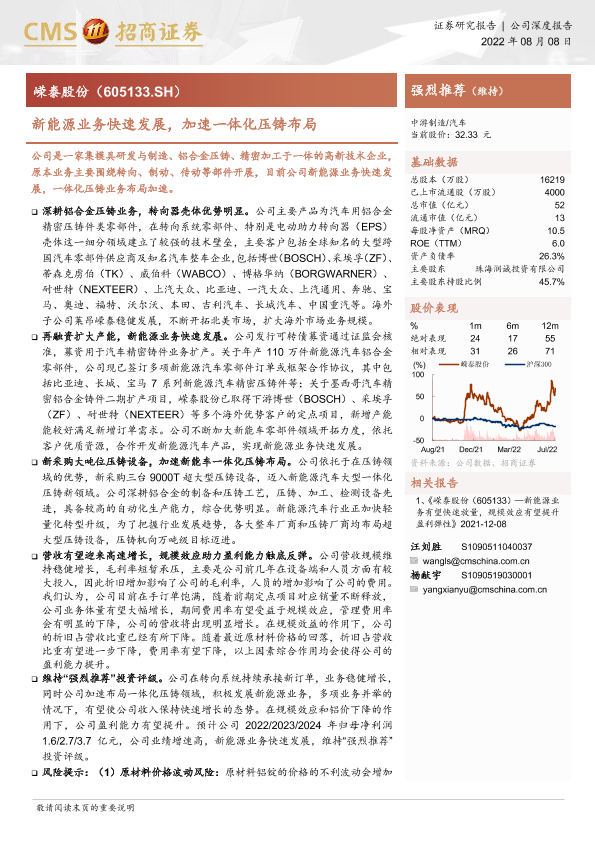 【海通证券】【20220808】嵘泰股份-新能源业务快速发展,加速一体化压铸布局-16页