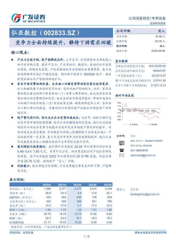 【广发证券】【20220809】弘亚数控(002833.SZ)-竞争力全面持续提升,静待下游需求回暖-31页