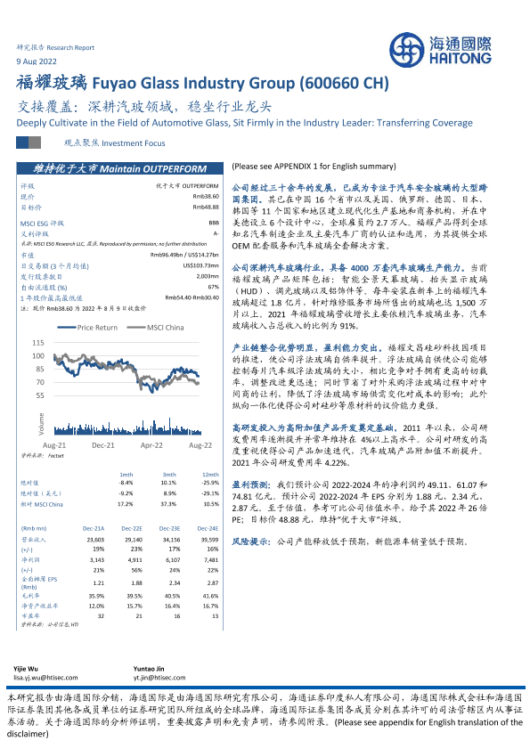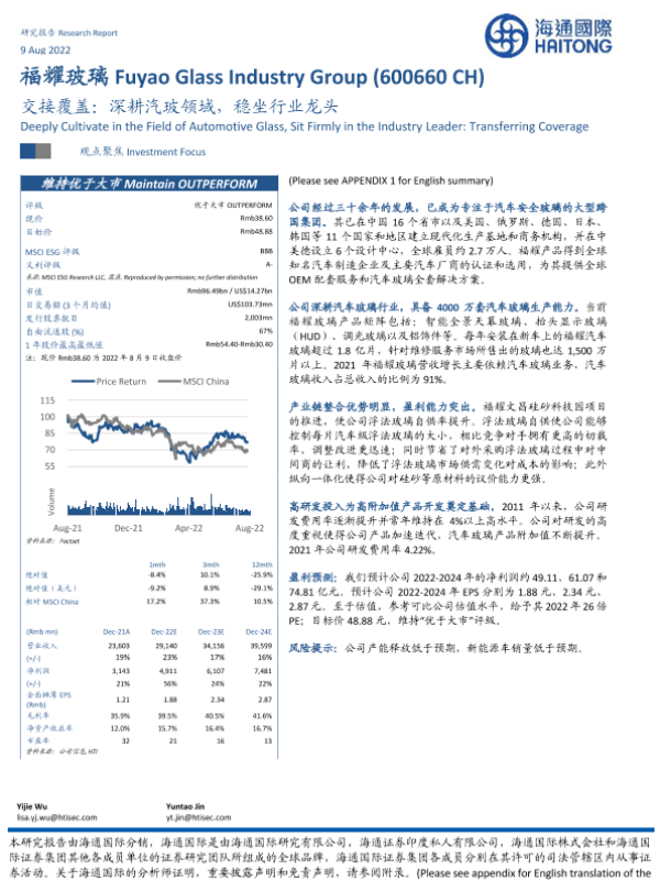 【海通国际】【20220809】交接覆盖:深耕汽玻领域,稳坐行业龙头-30页