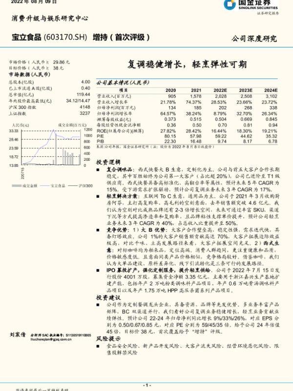 【国金证券】【20220809】20220809-国金证券-宝立食品-603170.SH-复调稳健增长,轻烹弹性可期-36页