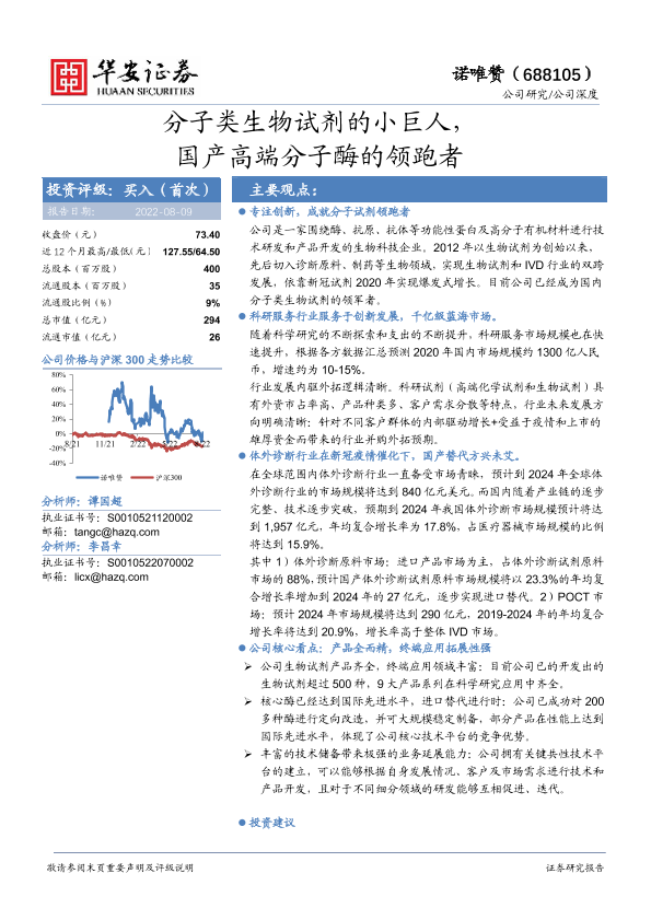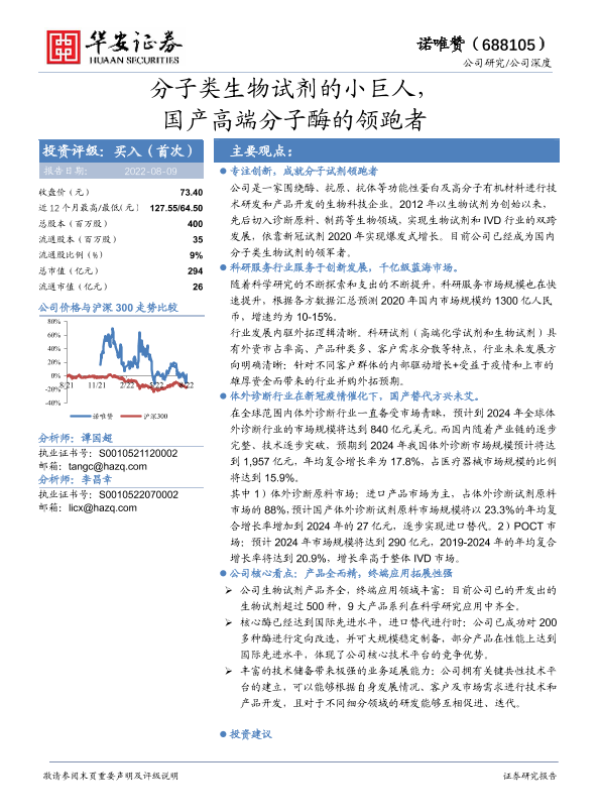 【华安证券】【20220809】20220809-华安证券-诺唯赞-688105.SH-分子类生物试剂的小巨人,国产高端分子酶的领跑者-38页