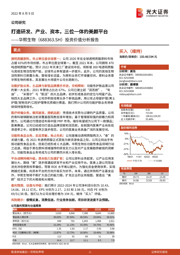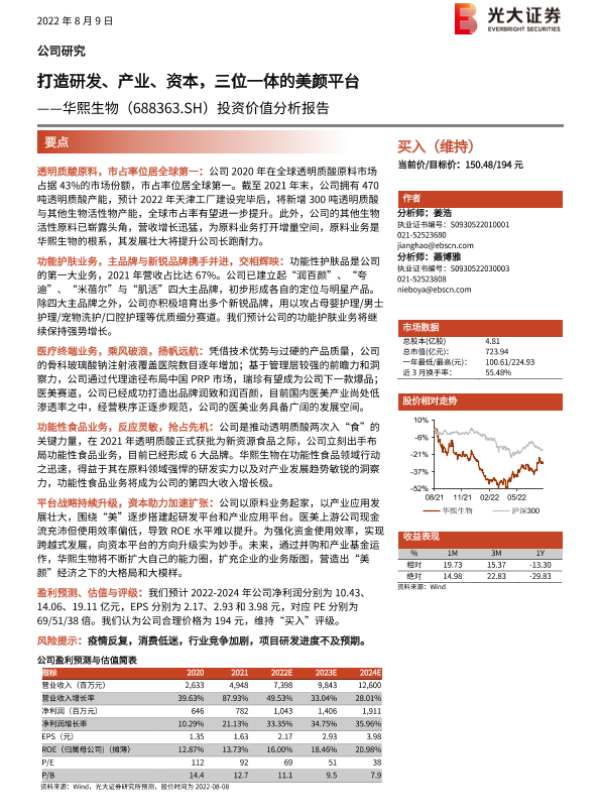 【光大证券】【20220809】20220809-光大证券-华熙生物-688363.SH-投资价值分析报告:打造研发、产业、资本,三位一体的美颜平台-64页