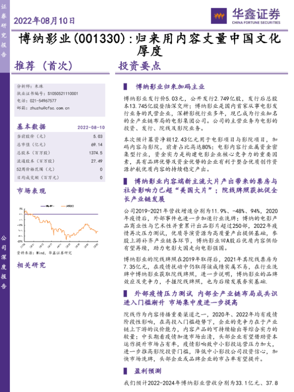 【华鑫证券】【20220810】博纳影业(001330) 归来用内容丈量中国文化厚度-34页