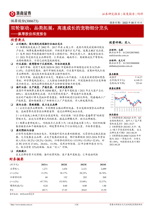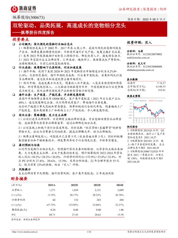【浙商证券】【20220811】佩蒂股份深度报告:双轮驱动、品类拓展,高速成长的宠物细分龙头-26页
