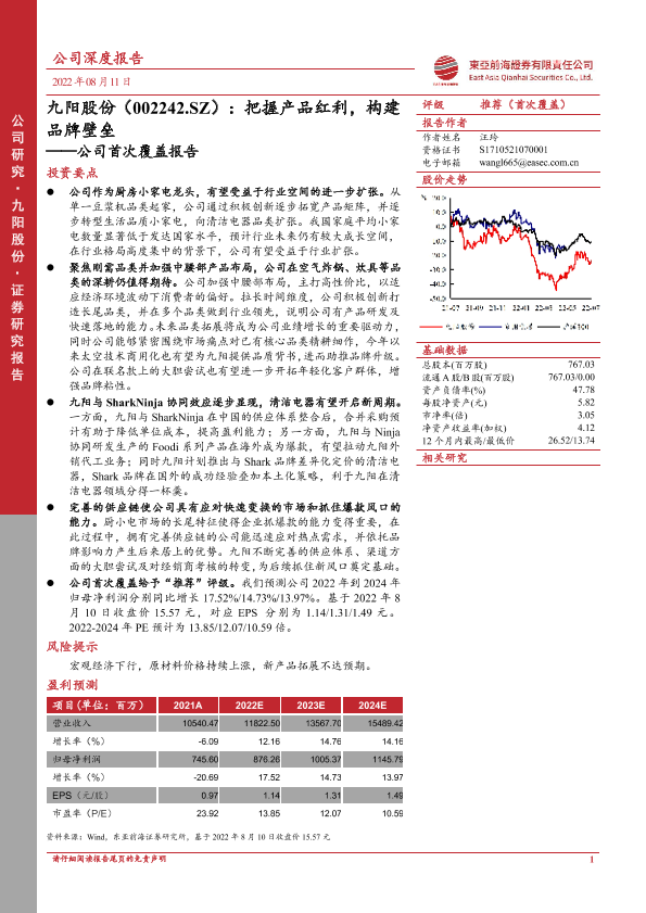 【东亚前海证券】【20220811】九阳股份(002242.SZ):把握产品红利,构建品牌壁垒——公司首次覆盖报告-25页