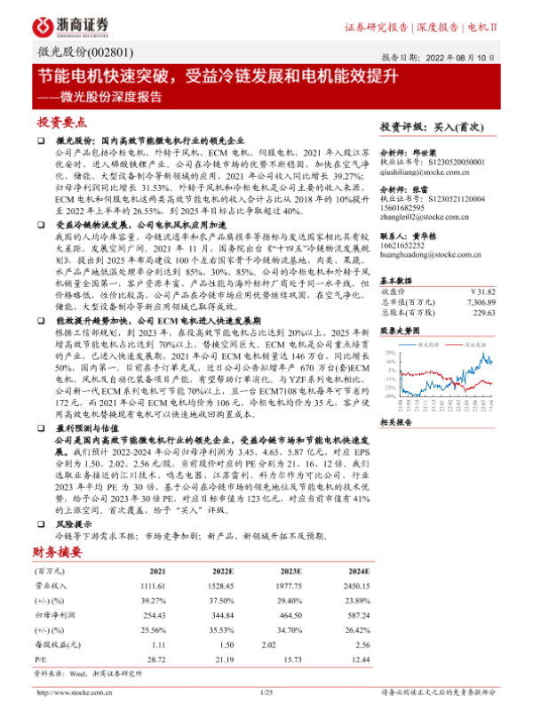 【浙商证券】【20220810】微光股份深度报告:节能电机快速突破,受益冷链发展和电机能效提升-25页
