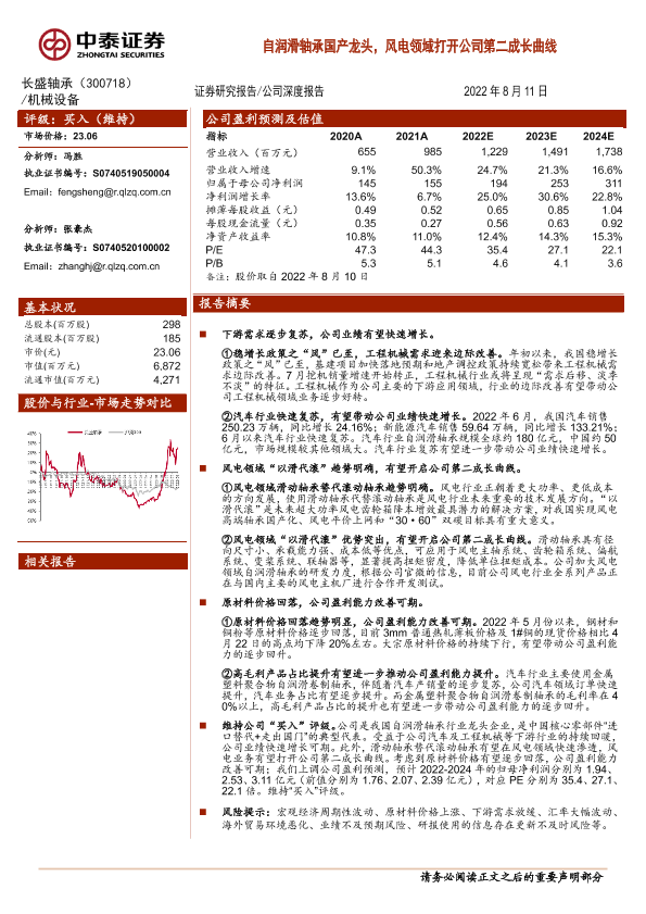 【中泰证券】【20220811】20220811-中泰证券-长盛轴承-300718.SZ-自润滑轴承国产龙头,风电领域打开公司第二成长曲线-19页
