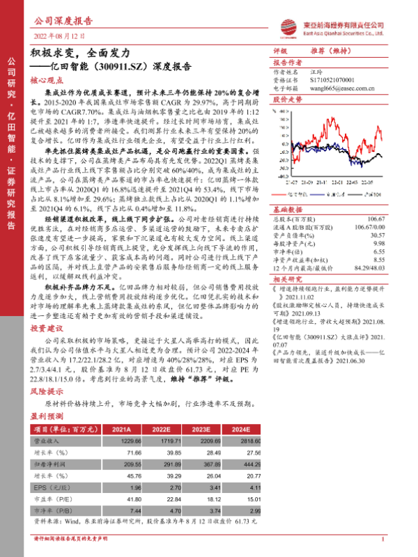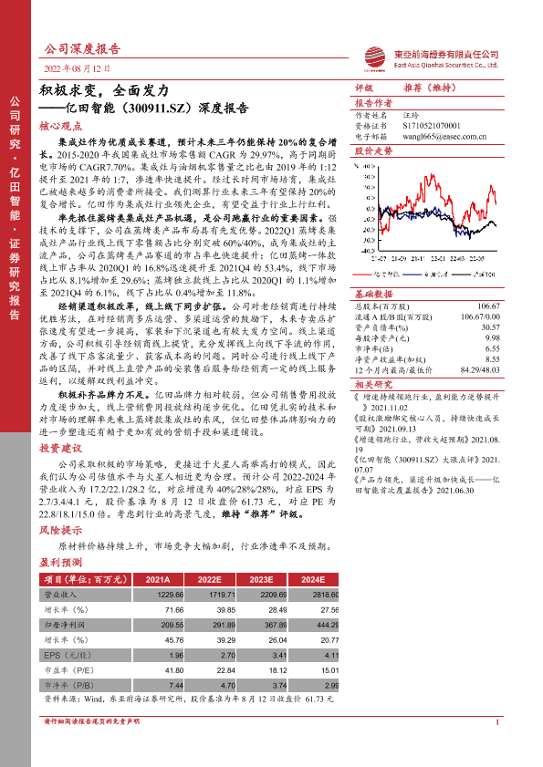 【东亚前海证券】【20220812】20220812-东亚前海证券-亿田智能-300911.SZ-深度报告:积极求变,全面发力-24页