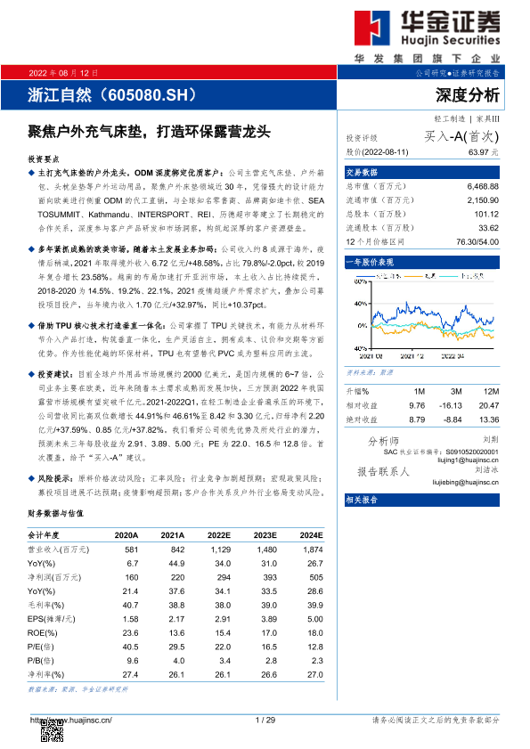 【华金证券】【20220812】聚焦户外充气床垫,打造环保露营龙头-29页