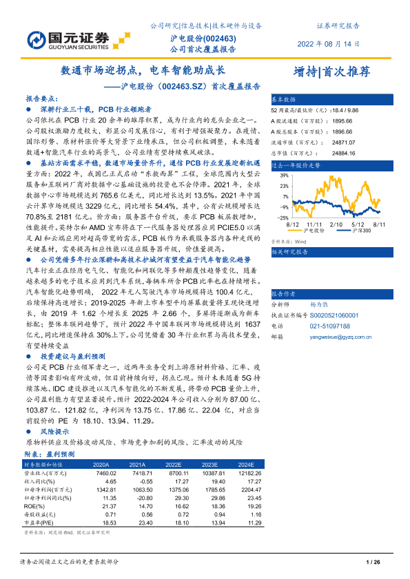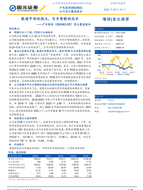 【国元证券】【20220814】20220812-国元证券-沪电股份-002463.SZ-首次覆盖报告:数通市场迎拐点,电车智能助成长-26页