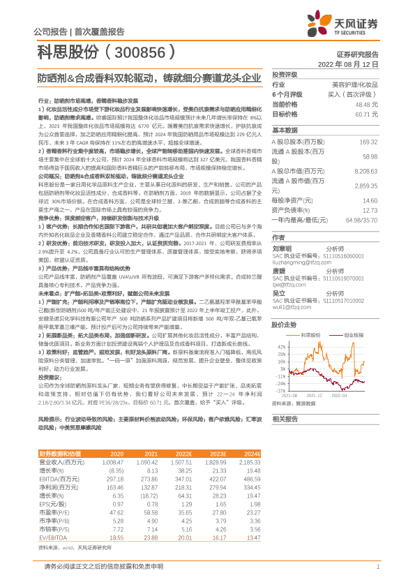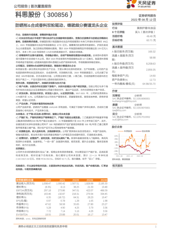 【天风证券】【20220812】科思股份-防晒剂&合成香料双轮驱动,铸就细分赛道龙头企业-33页