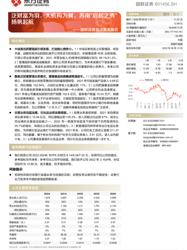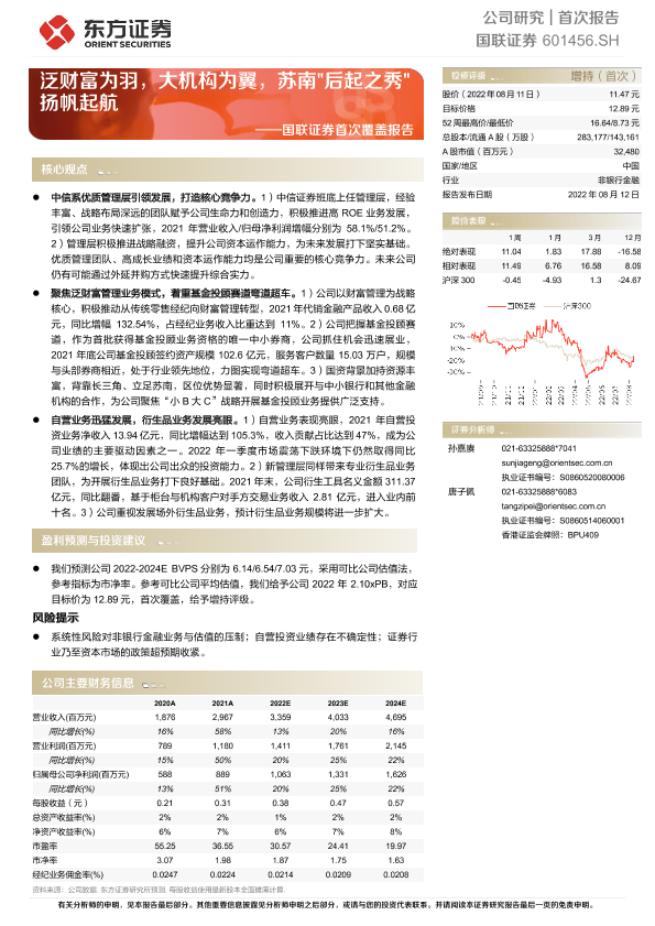 【东方证券】【20220814】国联证券首次覆盖报告:泛财富为羽,大机构为翼,苏南'后起之秀'扬帆起航-25页