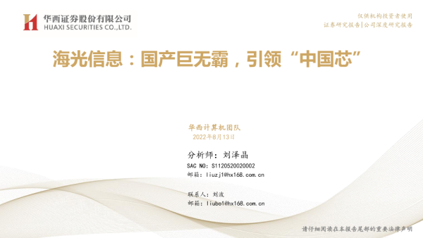 【华西证券】【20220813】海光信息:国产巨无霸,引领“中国芯”-43页