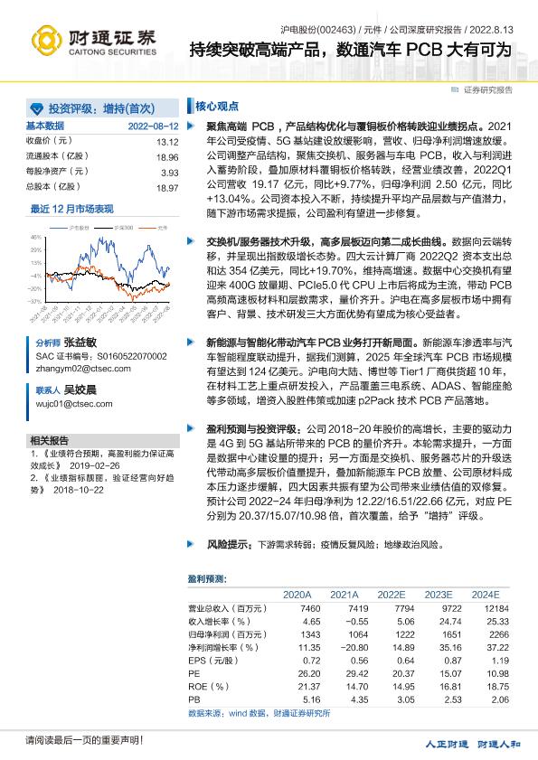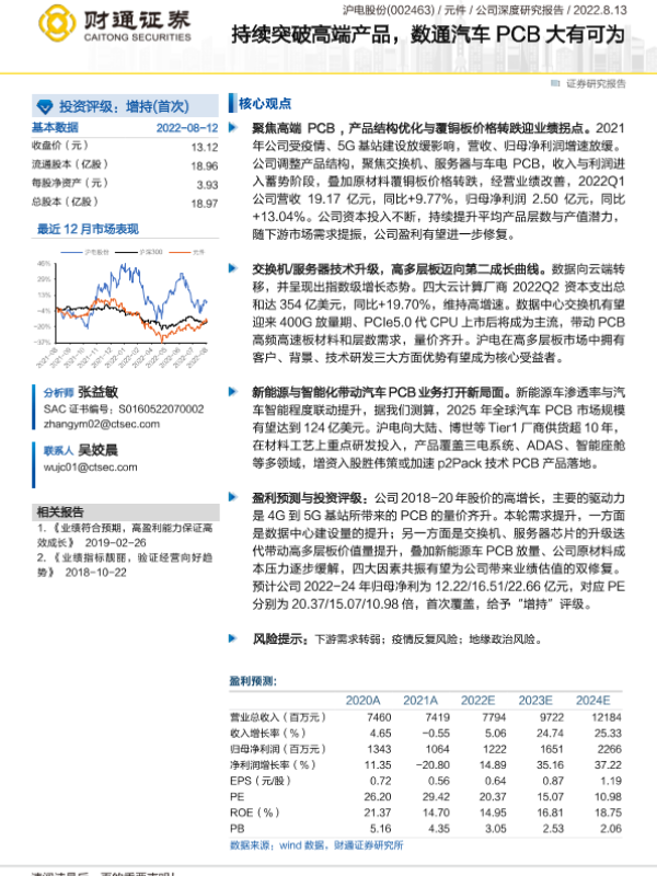 【财通证券】【20220813】持续突破高端产品,数通汽车PCB大有可为-38页