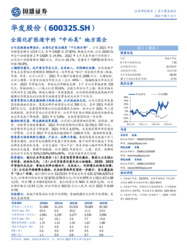 全国化布局 华发股份 房地产开发 投资建议 财务分析