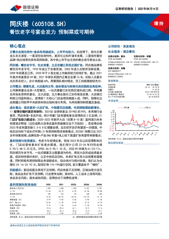 【国信证券】【20220814】同庆楼(605108.SH)餐饮老字号宴会发力预制菜或可期待-40页