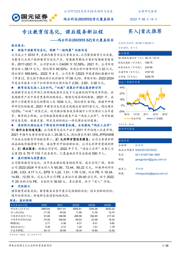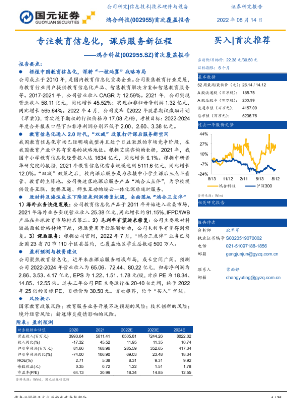 【国元证券】【20220814】20220814-国元证券-鸿合科技-002955.SZ-首次覆盖报告:专注教育信息化,课后服务新征程-25页